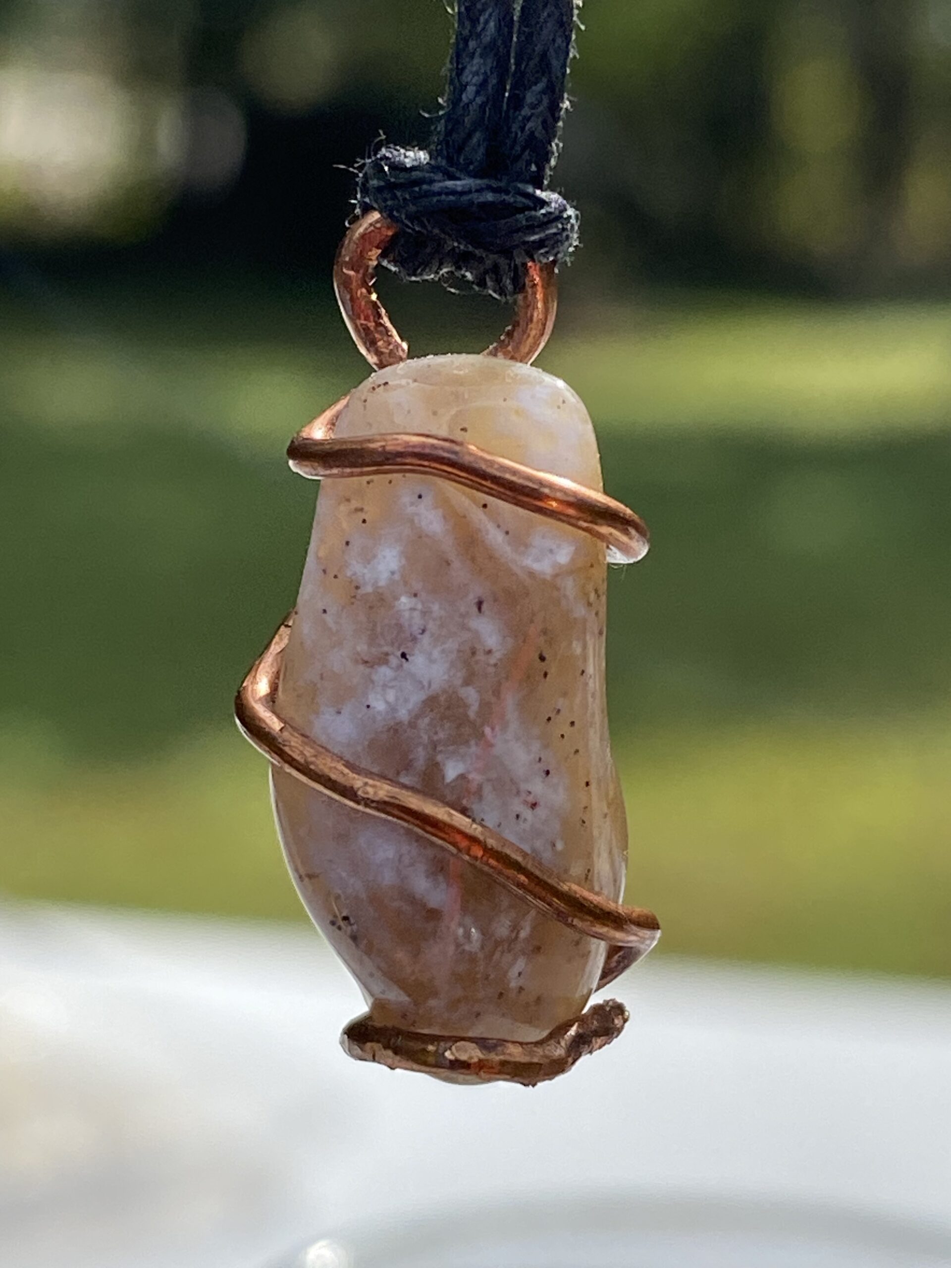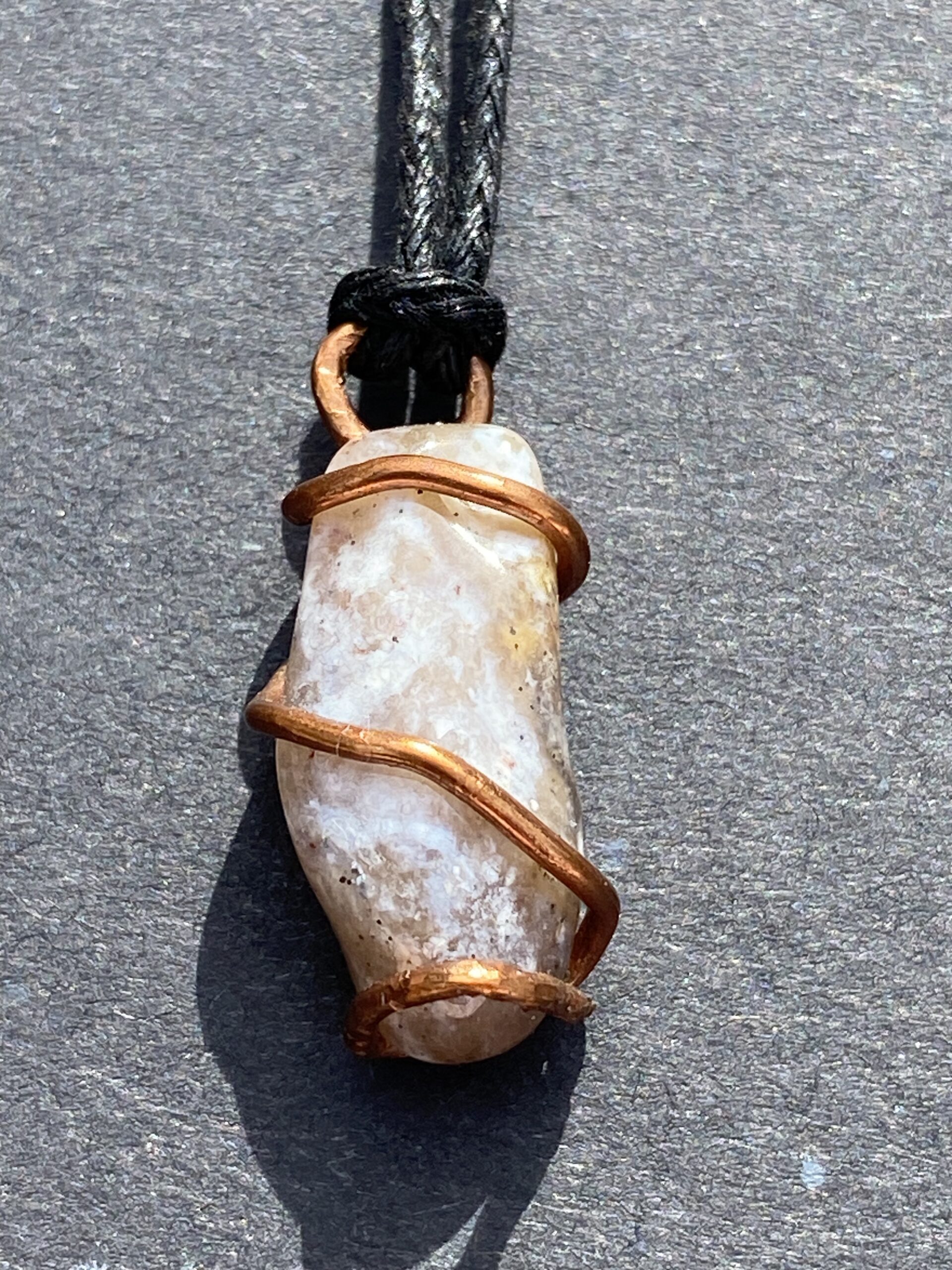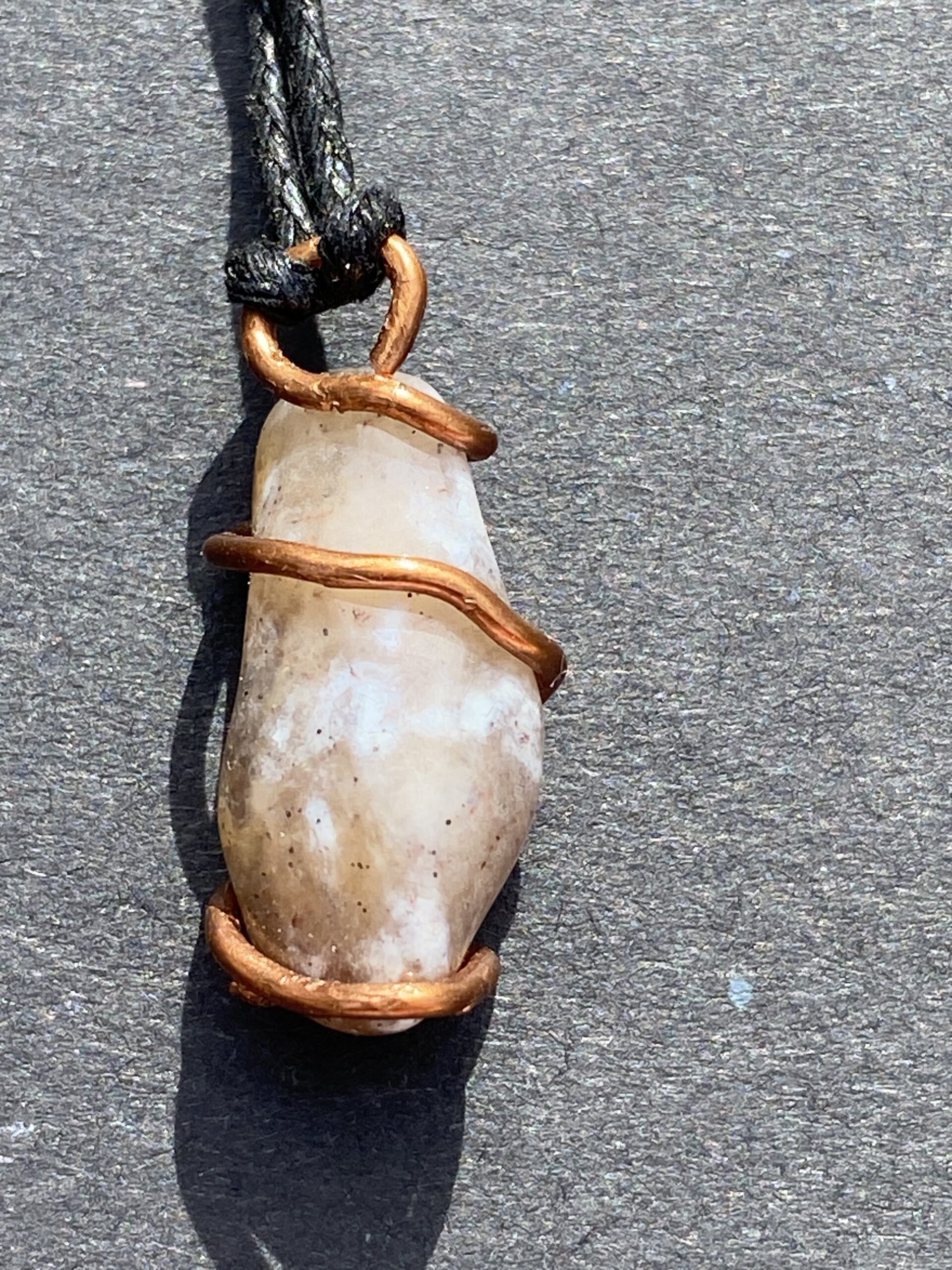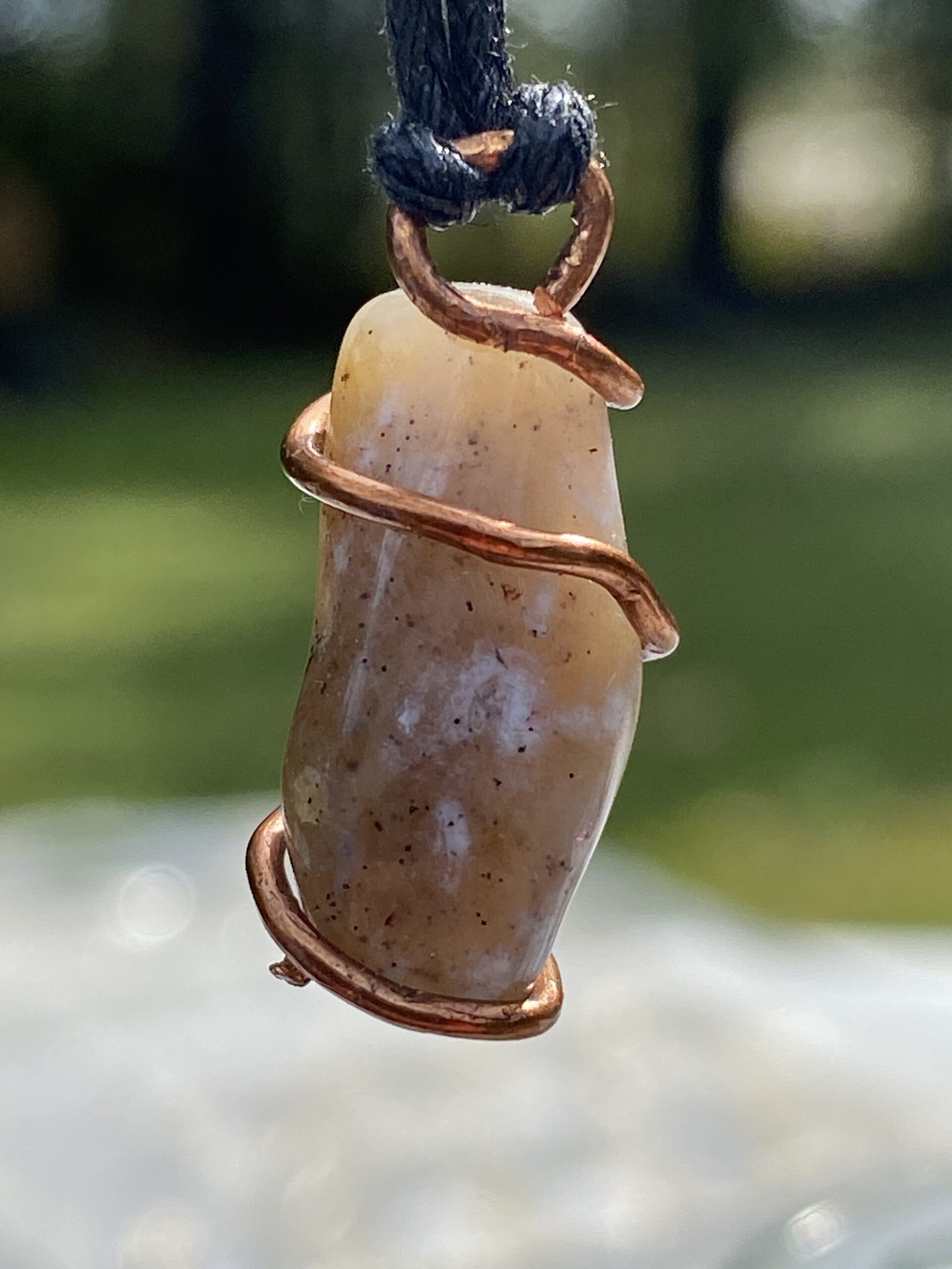 This is a small, simple, thicker wire wrapped stone from Wyoming. Self tumbled and polished. Can be used as pendant or own creation.